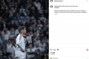 体育资讯4月18日讯 皇马在欧冠1/4决赛以总比分1比5大比分被阿森纳淘汰出局。赛后,巴尔韦德通过社交媒体向球迷致歉,并感谢球迷支持直至最后一刻。